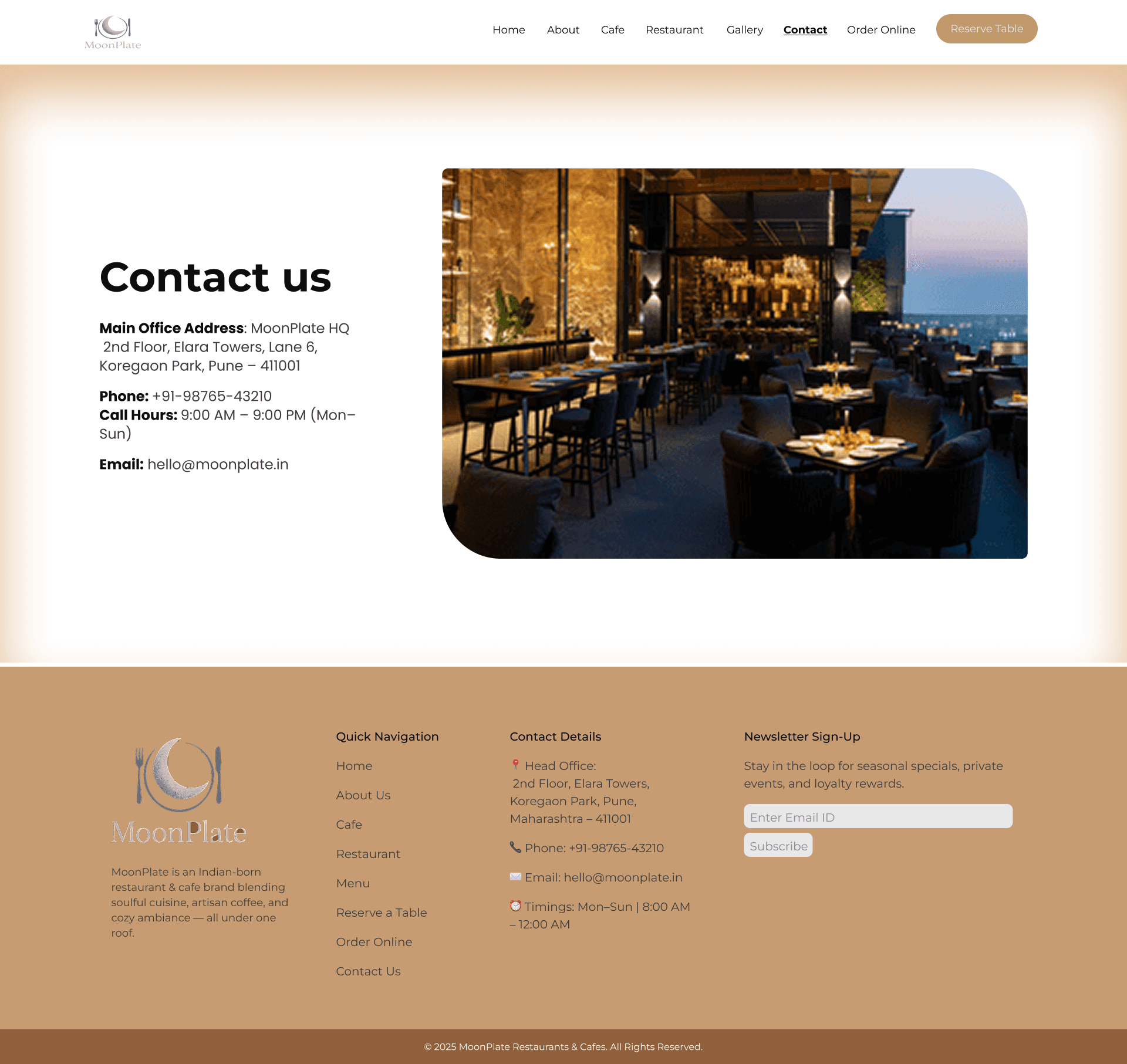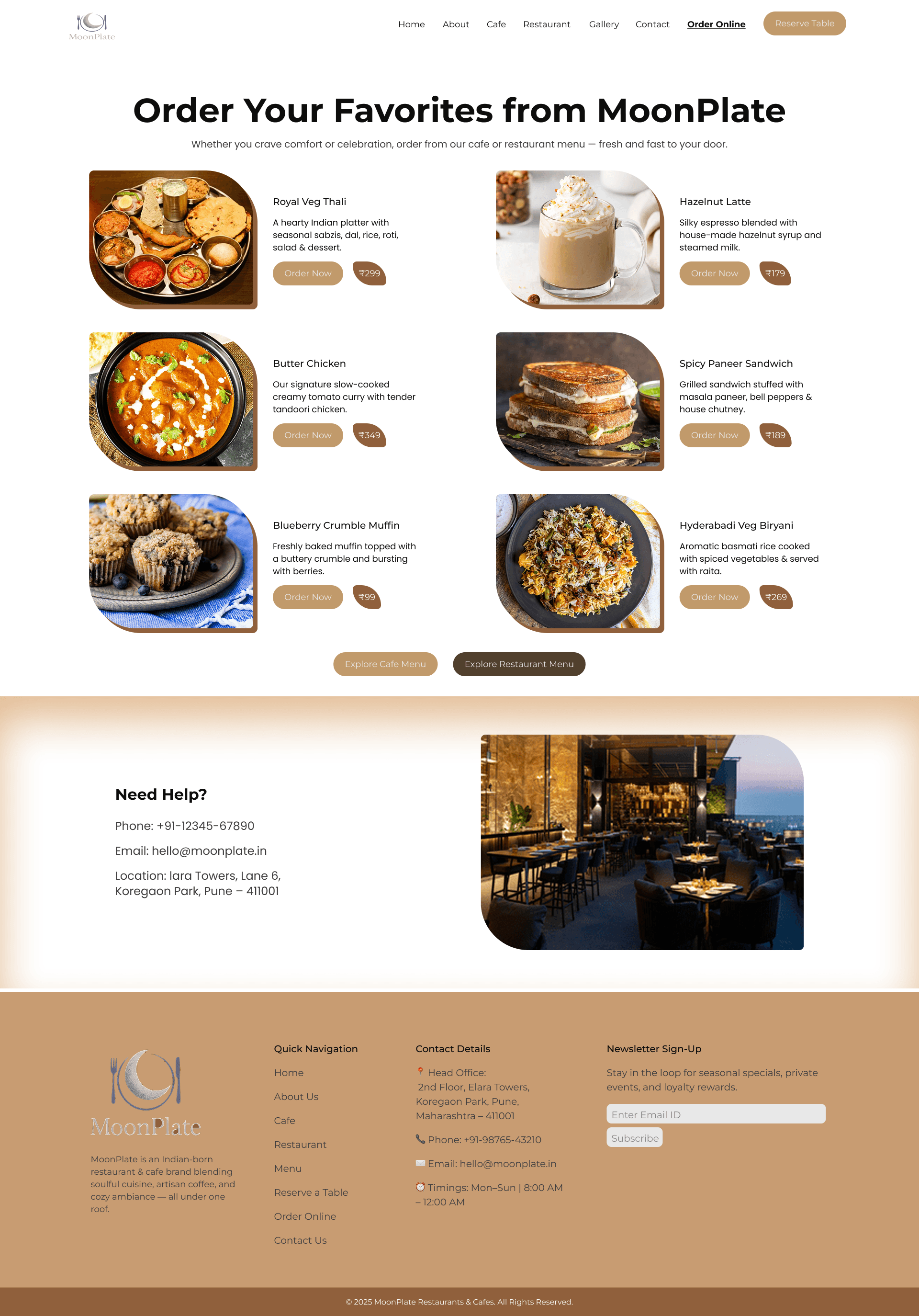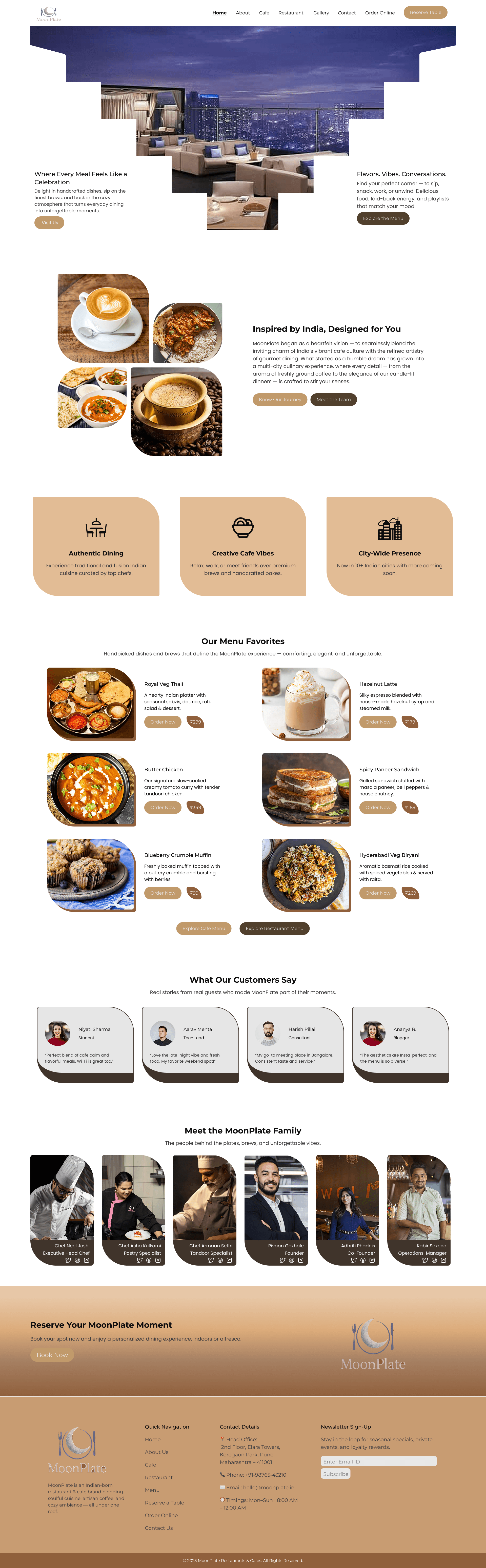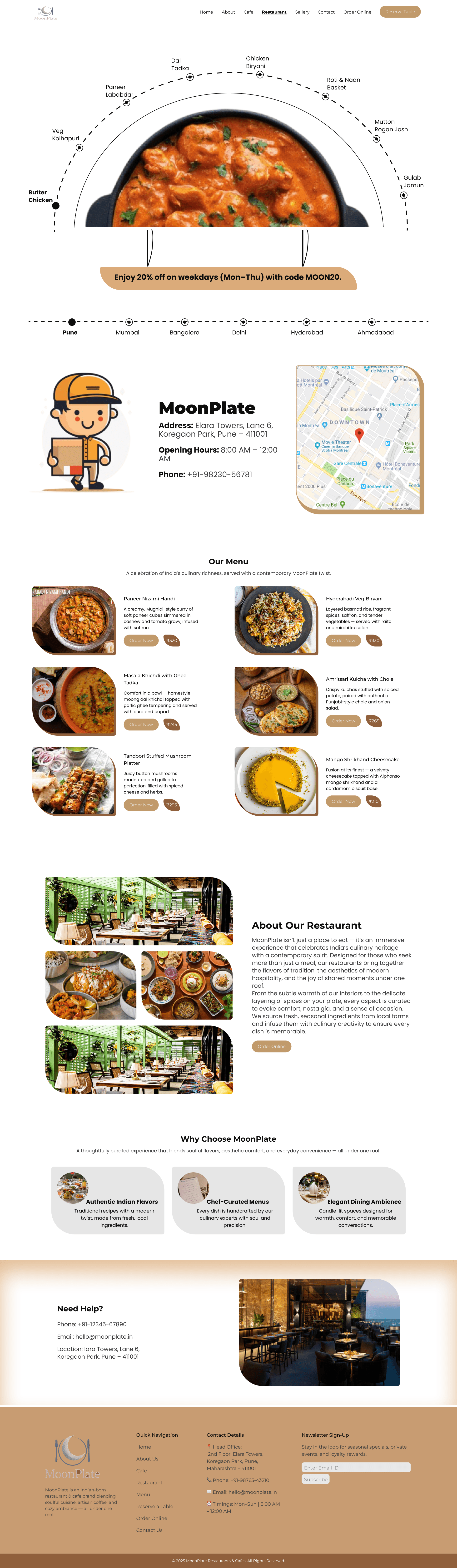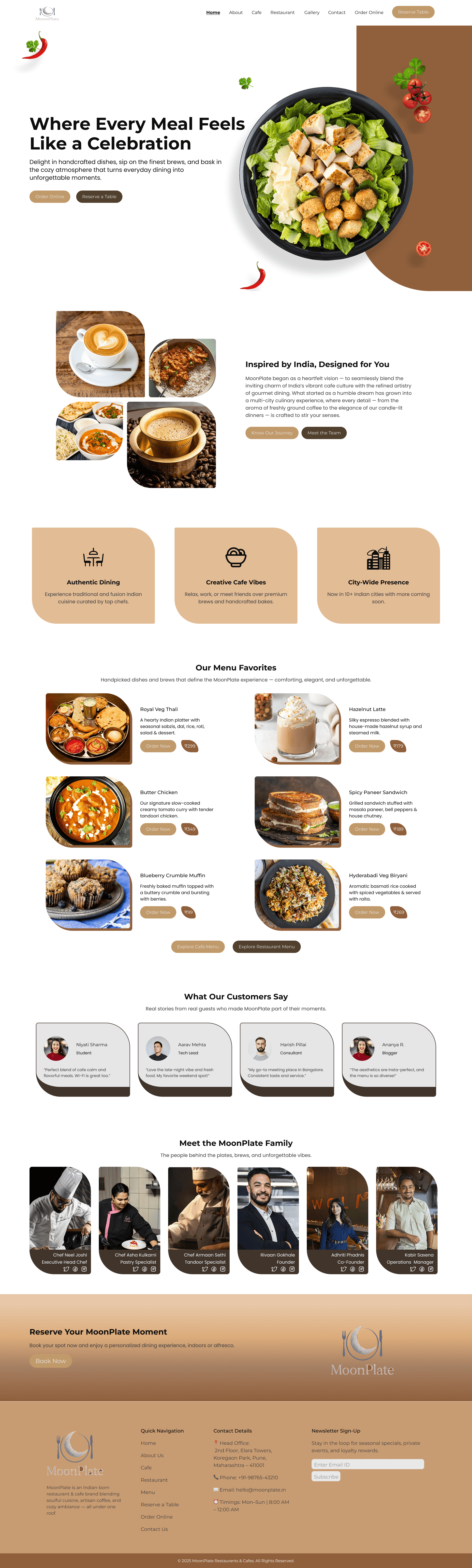 A premium, luxurious digital experience crafted for MoonPlate — a 5-star multi-location restaurant brand — combining rich aesthetics, intuitive UX, and a cohesive brand identity across web and mobile.